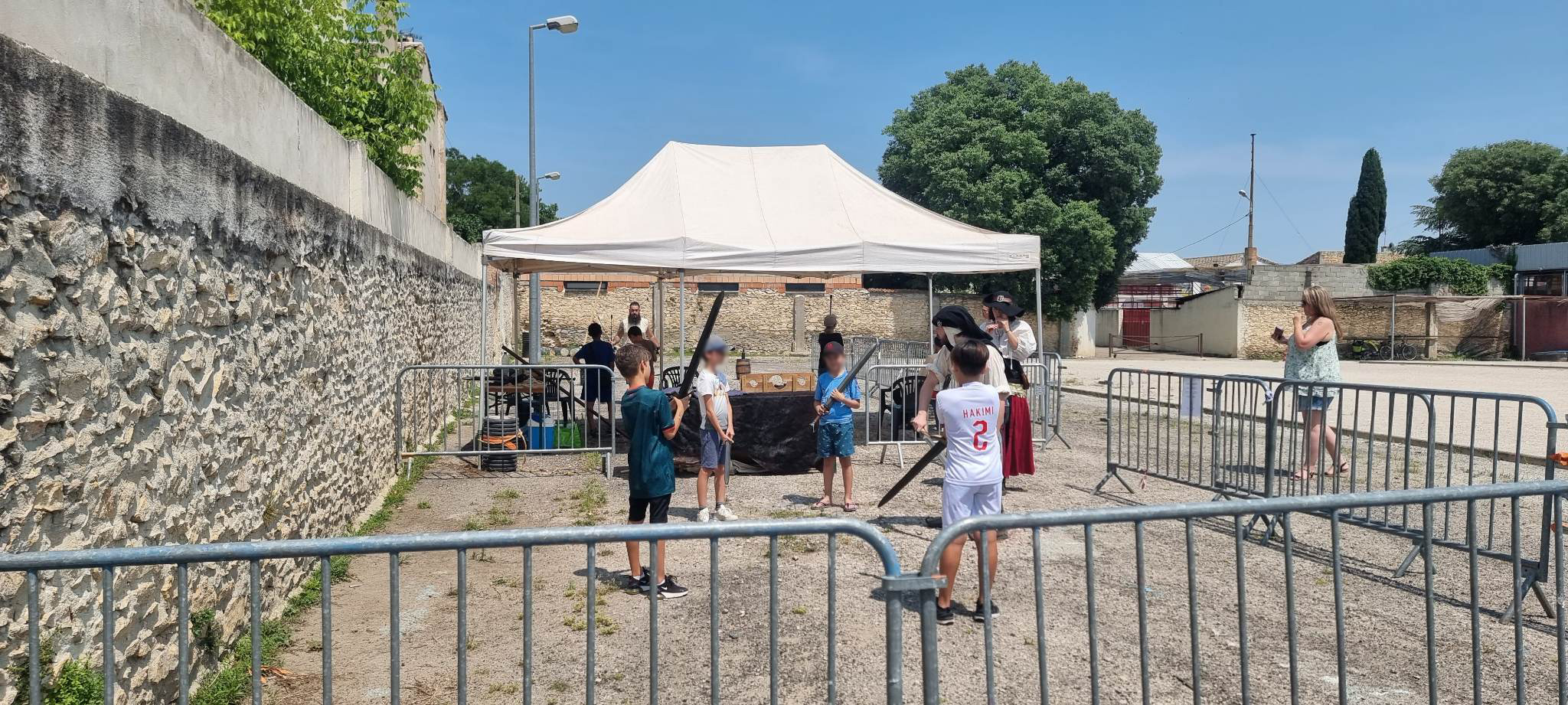 Aujourd’hui, nous sommes allés à la kermesse d’Uchaud animer un tir à l’arc et une initiation au combat de gn !