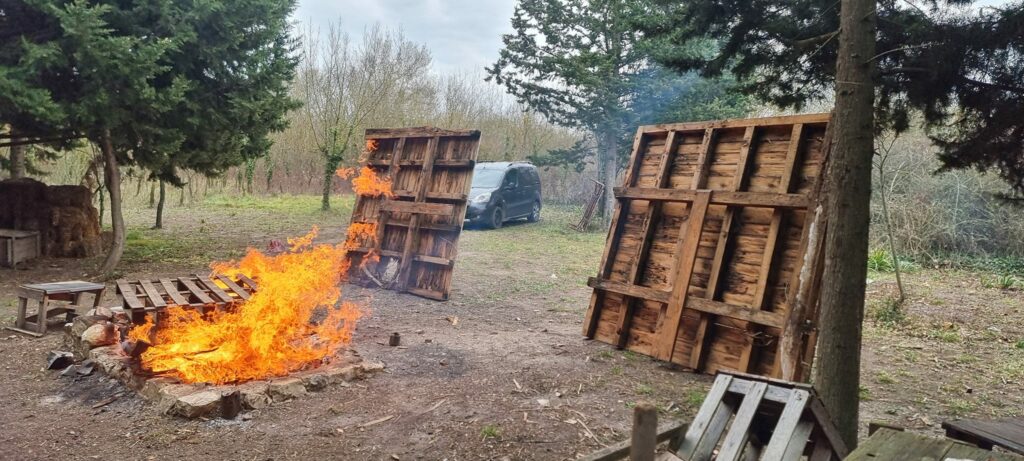 Mais les composants de cette structure n’ont pas été jetés, les planches où l’on marchait sont devenues des murs épais, et les palettes encore valides soutenant le pont ont rejoint le stock de bois pour de futures constructions.